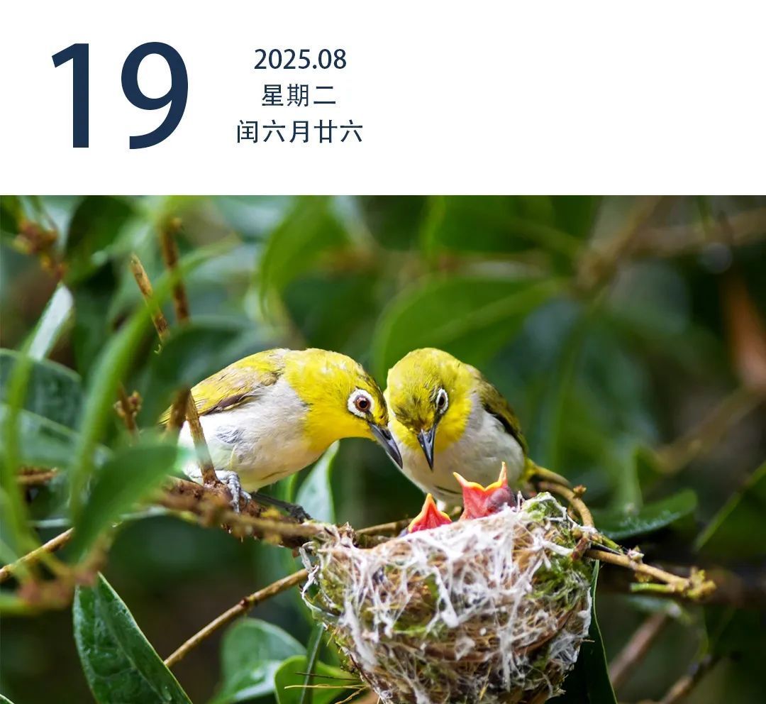 清远连州市西岸镇王瓜山村,一对绣眼鸟看着索要食物的幼鸟。清远日报签约摄影师 骆志刚 摄