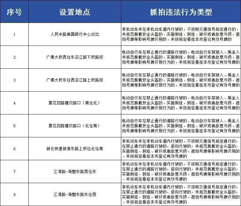 8月18日,广州交警在广佛大桥等路段新增电动自行车交通违法行为抓拍取证点位8个,对原有的起义路大德路口等47个点位新增未规范佩戴安全头盔、未按规定悬挂本市登记有效号牌的违法行为抓拍类型。